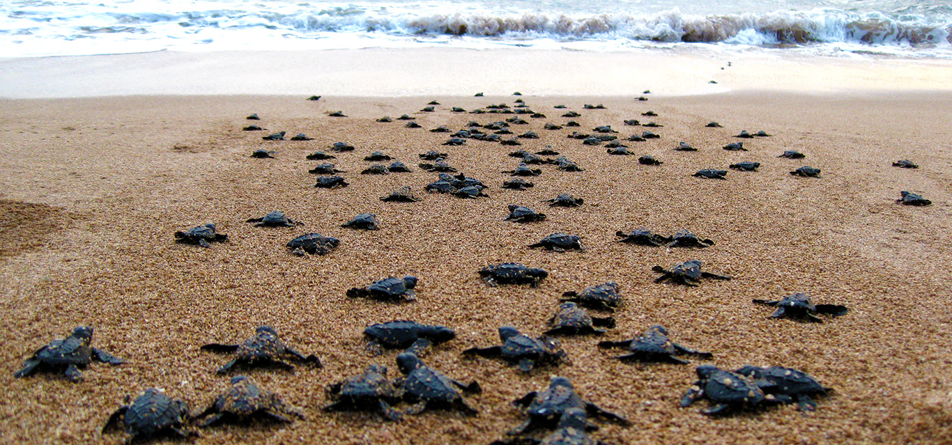 Our aim is to prevent further decline of their population and protect turtles by ensuring viable nesting and feeding populations of these magnificent ancient creatures. Sea turtles of all different varieties, including the Green, Loggerhead, Hawksbill, and Olive Ridley turtles as well as the White Turtle, which is thought to be born once in a million, are seen. It is an amazing experience to release newborn turtles into the ocean, but it is only permitted after 6 o'clock in the evening when the sky has darkened and the water is safer for them.